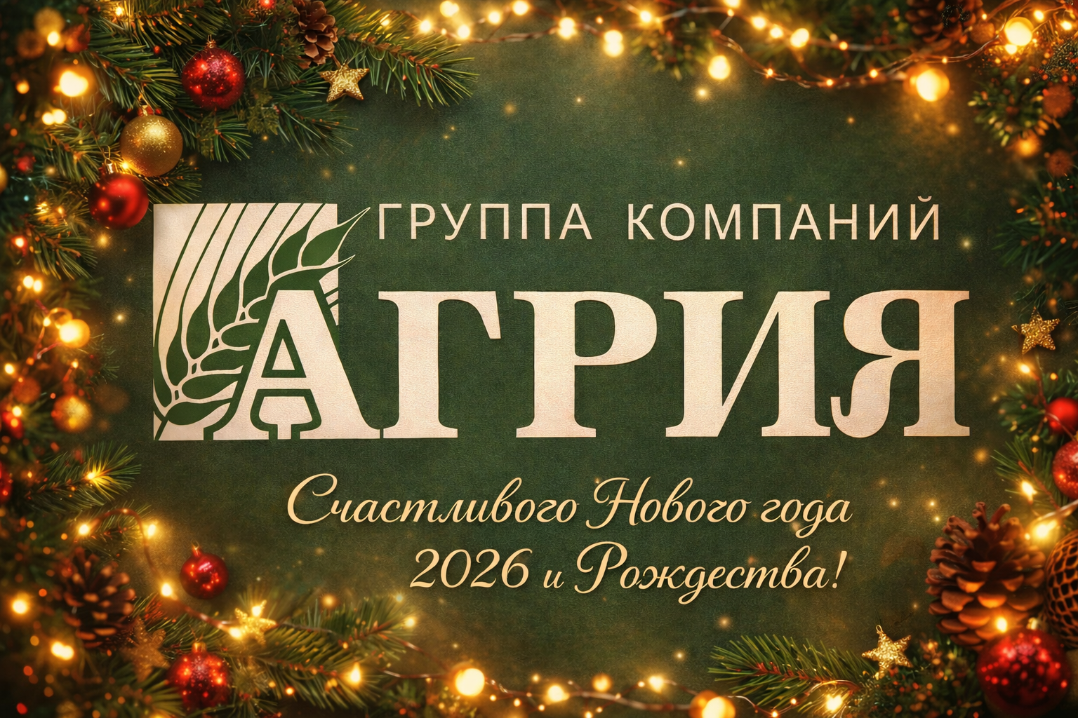 Группа компаний «АГРИЯ» сердечно поздравляет аграриев, партнёров и всех, кто трудится в сфере агропромышленного комплекса, с Новым годом и Рождеством.